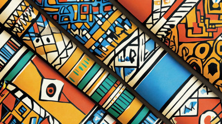 Vibrant traditional Ndebele art patterns showcased in South African textile design, featuring colorful geometric shapes and cultural heritage.