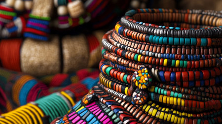 Close-up of colorful African textiles, emphasizing their unique and beautiful patterns.