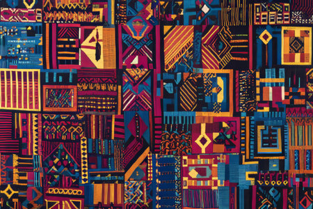 Vibrant Ndebele art patterns in a traditional South African textile, featuring colorful geometric shapes that reflect heritage and craftsmanship.