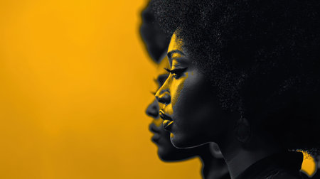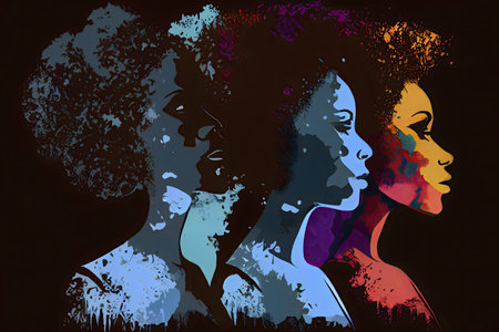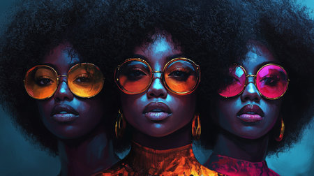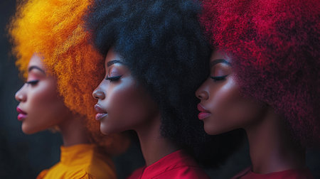 Three abstract portraits of Black women, vibrant colors, digital art.