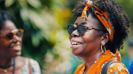A vibrant group of women sporting stylish sunglasses during Juneteenth celebrations.
