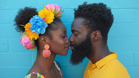 Cheerful black duo in colorful outfits expressing happiness. AI generative.