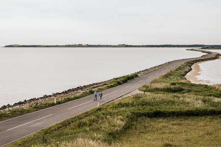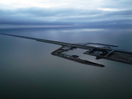 View on Afsluidijk, long dam with freeway for protection of Netherlands from water of North Sea