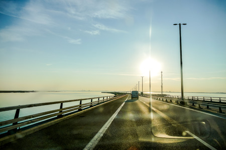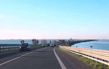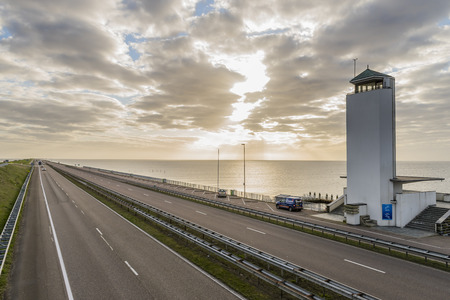 Dutch highway at the afsluitdijk. The dike is the connection between Friesland and Noord-Holland and seperates the Waddensea from the IJsselmeer