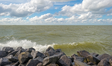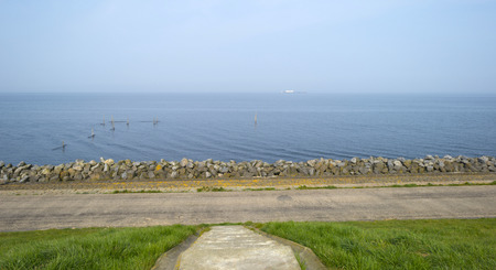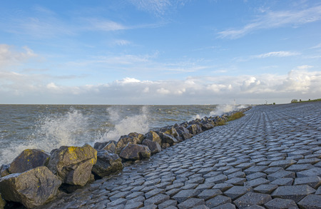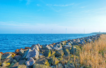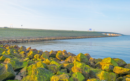 Stretch dam with basalt blocks from an old fishing harbor in the dutch lake 'IJsselmeer'