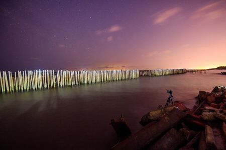 Setup camera to take the photo of the sea in night time