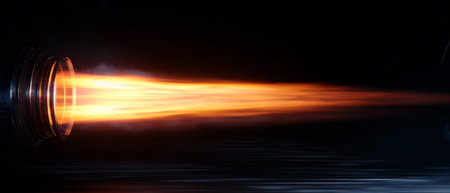 Futuristic engine blasting fiery orange energy beam. Generative AI