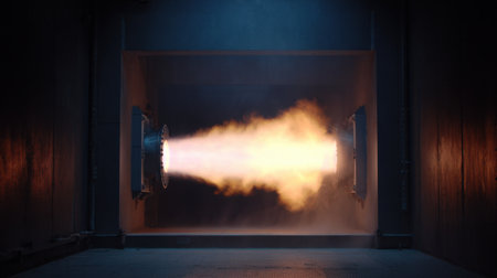 Rocket Engine Test Firing in Industrial Facility. Generative AI