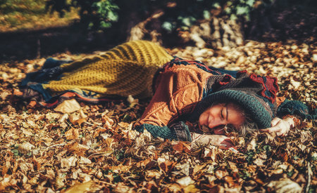 girl sitting in a fall forest