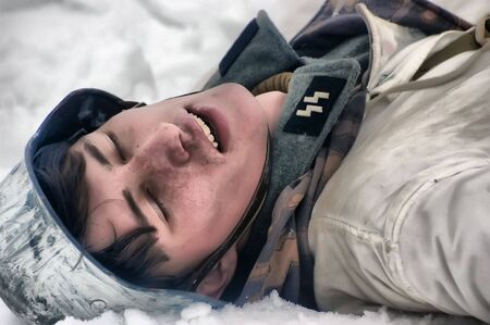 KIEV, UKRAINE - FEB 14: Members of a history club wear historical German uniforms during a WWII reenactment of 'Defense Kiev' in 1943. The event took place on February 14, 2010 in Kiev, Ukraine.