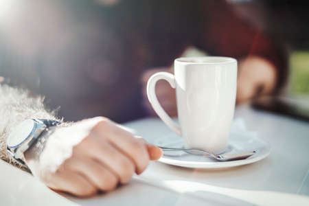 Hands whit coffee cup over backgroud of natural