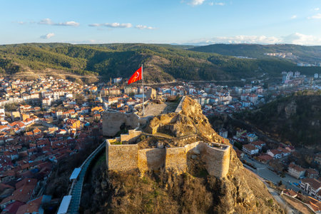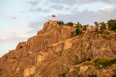 Rugged cliffs and weathered fortifications of Ankara Castle stand sentinel, history etched in stone. Turkey