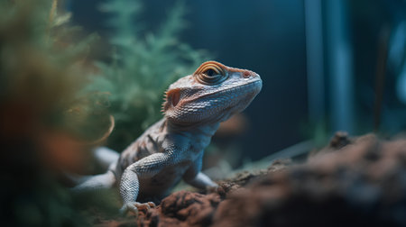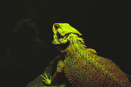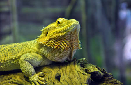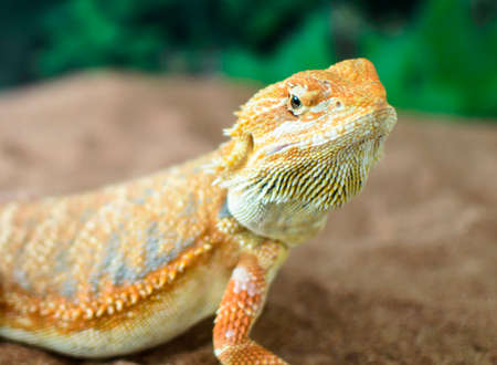 yellow bearded dragon lizard in terrarium portrait High quality photo
