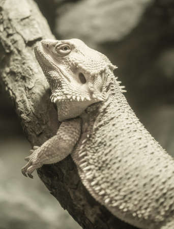 Closeup Bearded Dragon on Branch Isolated on Nature Background