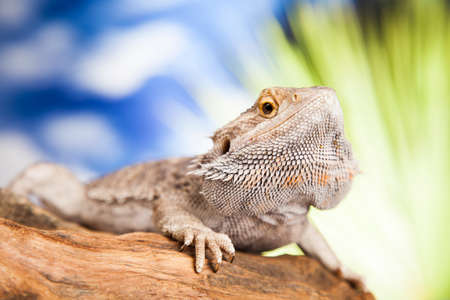 Closeup on a colorful lizard. colorful reptile in the Australia Zoo, Queensland, Sunshine Coast - The Home of the Crocodile Hunter. These saurian walking free around the zoo and playing model