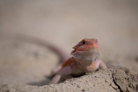 sand lizard in the terrarium, pet life at home, exotic reptile, amphibian dragon