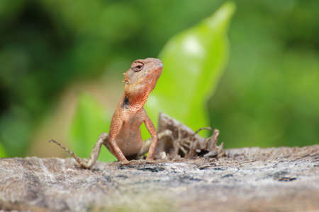 A Thai Lizard on stump at Garden in Lat krabang, Bangkok, Thailand