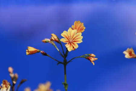 background orange blossoms against a blue sky, blurred