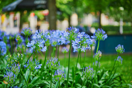 Blue agapanthus or African lily of nile flower is blooming in summer season for ornamental garden