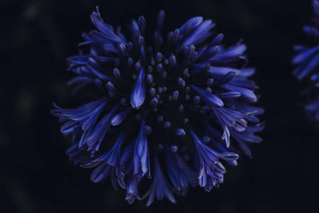 BANNER Real beauty nature photo background. Macro close up Agapanthus purple lilac inflorescence petal blue herb flower bloom blossom garden plant. Study Botanic summer spring floral symbol tenderness