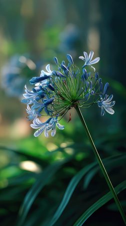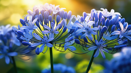 Captivating blue Agapanthus flowers with intricate details in a soft light