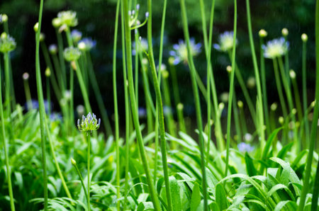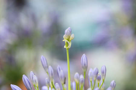 Agapanthus (African lily) flowers. Amaryllidaceae perennial bulbous. In early summer, refreshing, cool pale blue-purple flowers bloom at the tips of the stems.