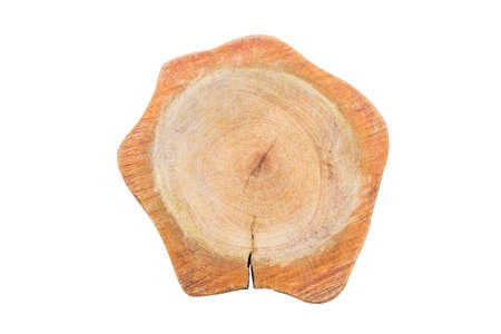 cut tree on white background. wooden tray.