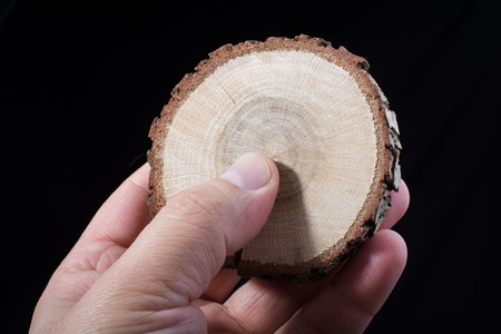 Small piece of cut wood log in hand background