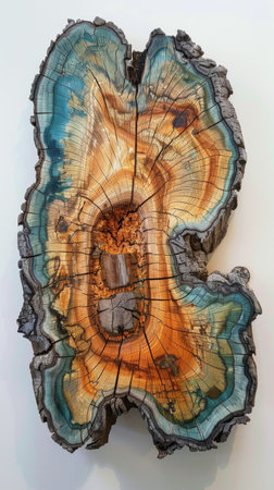 A cross slice of natural wood with rich textures and concentric circles, evoking an earthy, organic feel.