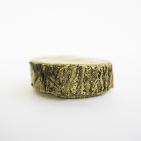 A cut of a part of a natural log on a white background.
