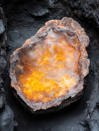Glowing amber crystal rock formation