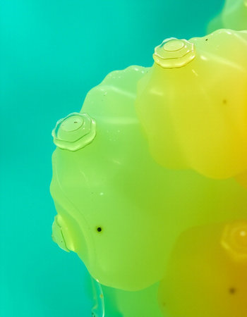 Subtle translucent effects and cool blue-green tonality evoke a sense of marine innovation in this meticulously crafted digital piece. Perfect for eco-friendly textile promotions, sustainable product mockups, beauty industry visuals, and scientific material presentations. The precise lighting accentuates surface qualities, offering high versatility for print and web ... AI-generated illustration.