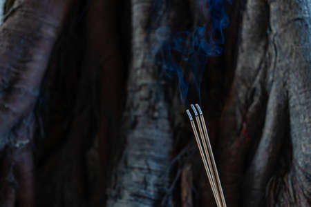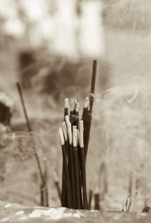 burning Embossed sticks and smoke from incense burning and smoke