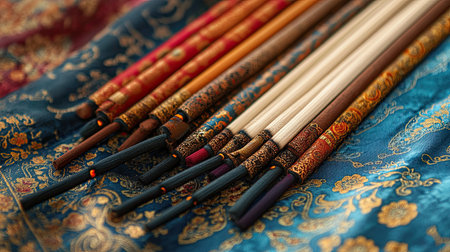 Close-up of ornate incense sticks with intricate golden patterns