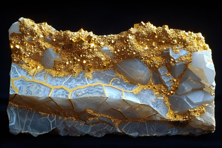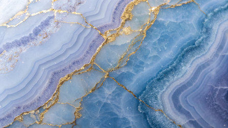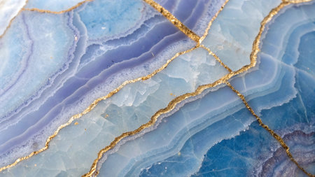 Macro shot of a blue chalcedony stone with gold veins