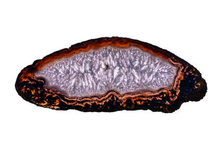 Polished slice of Agate and Quartz, isolated on a white background.