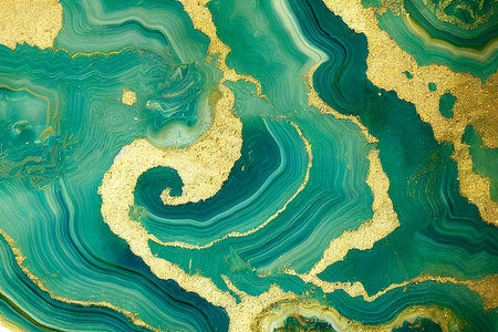Abstract painting with epoxy resin. Marble streaks of green,white and gold. Abstract modern with streaks liquid background for design,close up.