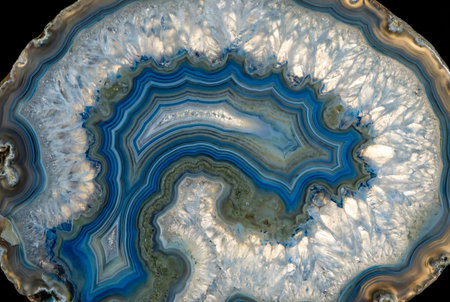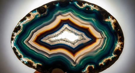 macro image of the intricate patterns in a slice of agate stone, created with generative ai