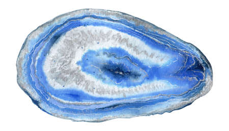 Blue agate slice. Blue Mineral Slice. Watercolor illustration isolated on white background.
