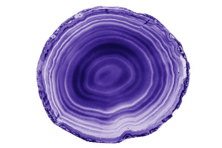 A painted Purple agate slice with white veins on a white background is perfect for jewelry. Its natural layers enhance the beauty of handmade accessories.