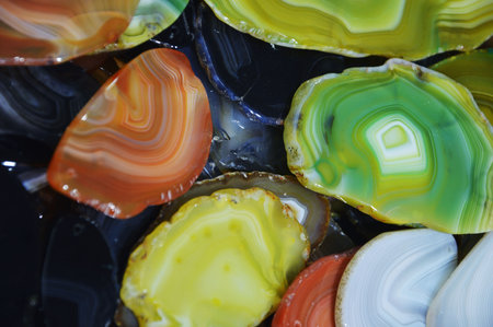 Colorful patterns and textures of agate rock close up view for art and nature backgrounds