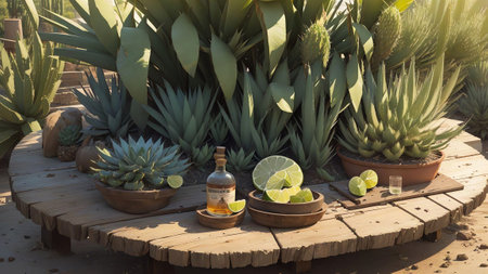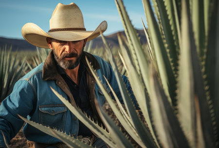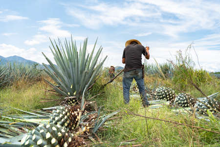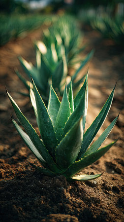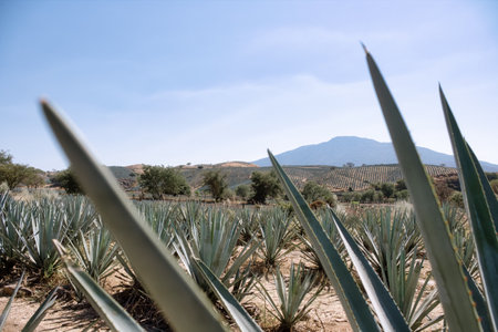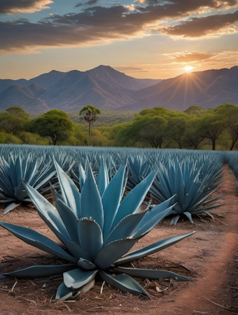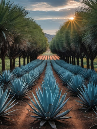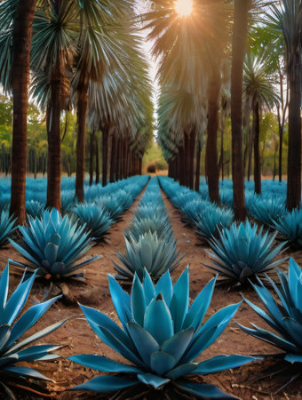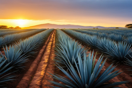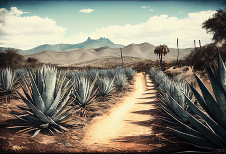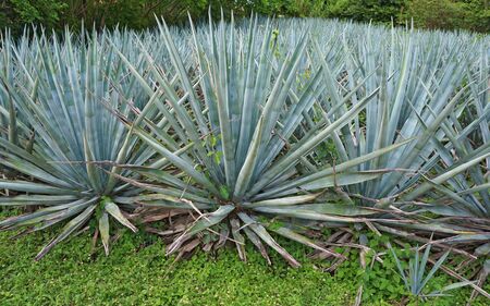 Blue agave plantation in the field to make tequila tequila tequila industry concept