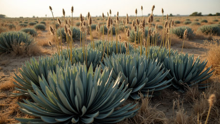 A wide shot of Aloe vera swaying gently in the wind, realistic photography style, bright and vivid colors, natural lighting.