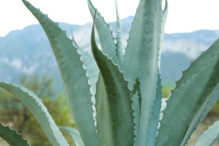 American aloe with beautiful leaves growing outdoors, closeup. tropical plant