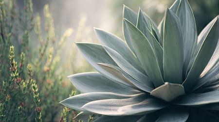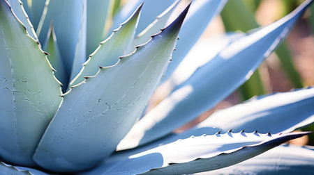 Close-up view of a vibrant agave plant with sharp, textured leaves. The image showcases the intricate details of an agave plant, highlighting its spiky edges and unique patterns under natural light.