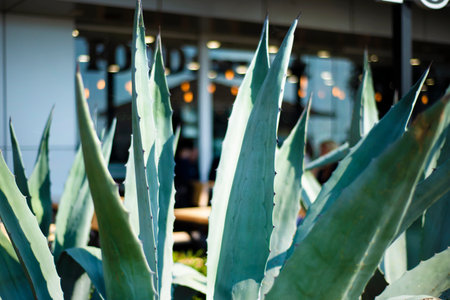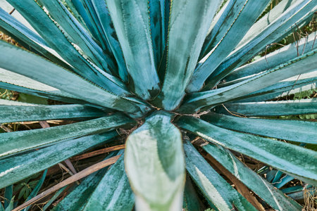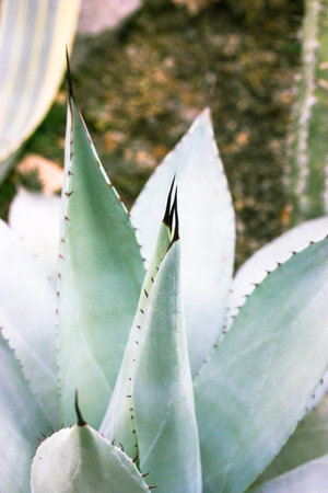 Prickly leaves of blue agave cactus close-up. Ingredient for the production of tequila.