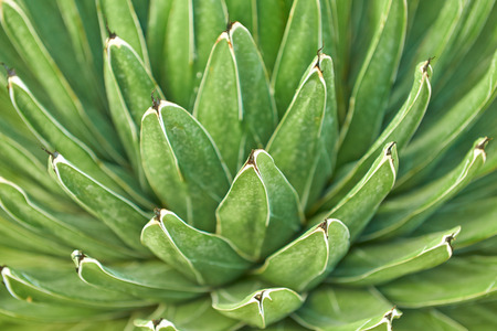 Agave, succulent plant. Nature, greenery, botany, botanical background detail concept. Overhead, top view shot with macro.