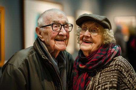 Elderly Couple Shares Happiness At Art Museum Exhibit