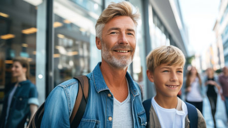 Happy Father and Son Enjoying a Sunny Day in the City.