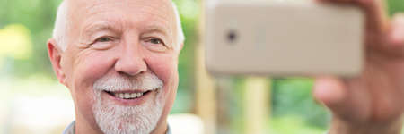 Older man taking a selfie on the park